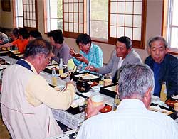 年寄りが集まって、地元でできたお茶を飲みながら、楽しく話の花を咲かせるのがみんなの夢でした。家族と一緒に住んでいる人が多いのですが、昼間は一人になる場合があります。病院も近くにはなく、健康のことが気になります。そこで、この夢を実現させるため、お茶飲み会「萌の里」を行うことにしました。