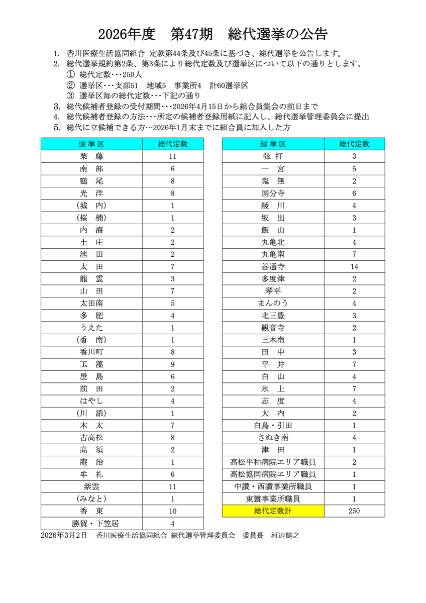 2026年度 第47期 総代選挙の公告