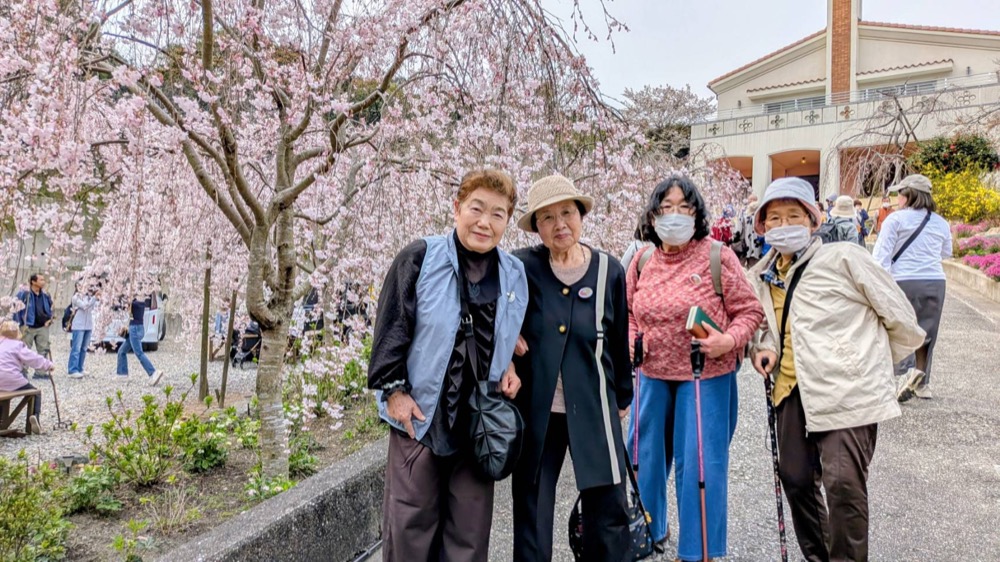 花見山では、歩行に不安のある方のために電動カートが用意されており、ほとんどの方が満開のしだれ桜を間近で楽しんでいただけたことも、大きな喜びとなりました。